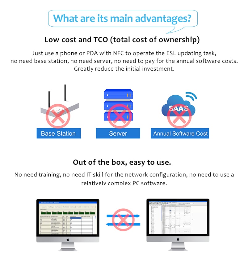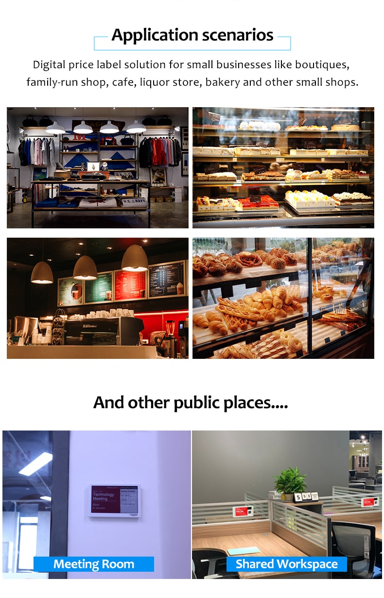 Il s'agit d'une étiquette de prix numérique avec technologie NFC pour les petites entreprises. Facile à mettre en œuvre, faible coût de démarrage.
